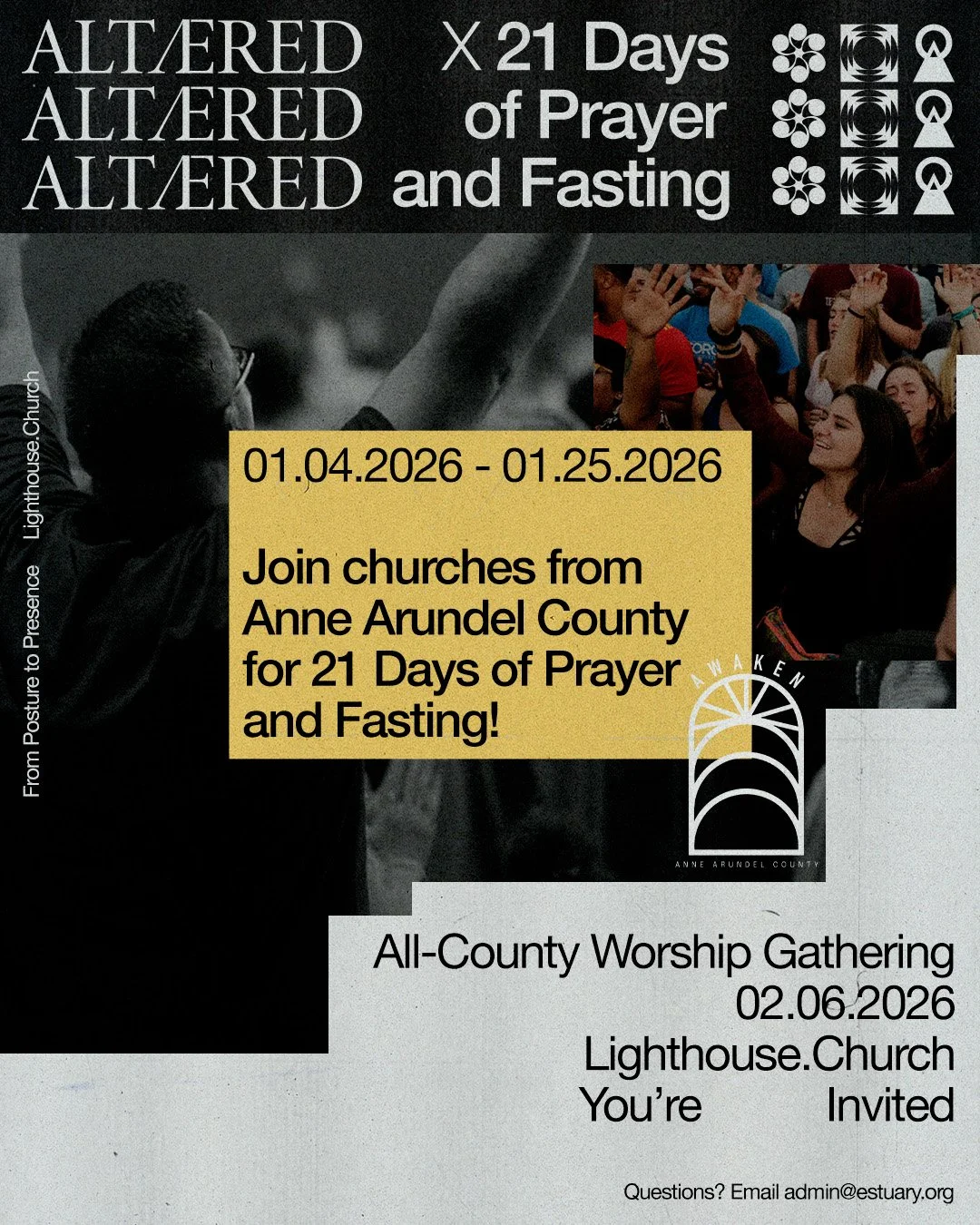 Altered: 21 Days of Prayer and Fasting is an invitation to all the churches and ministries of Anne Arundel County to start the year by praying and fasting for 21 days from January 4-25, culminating in an all-county worship gathering on February 6 (more info coming soon).