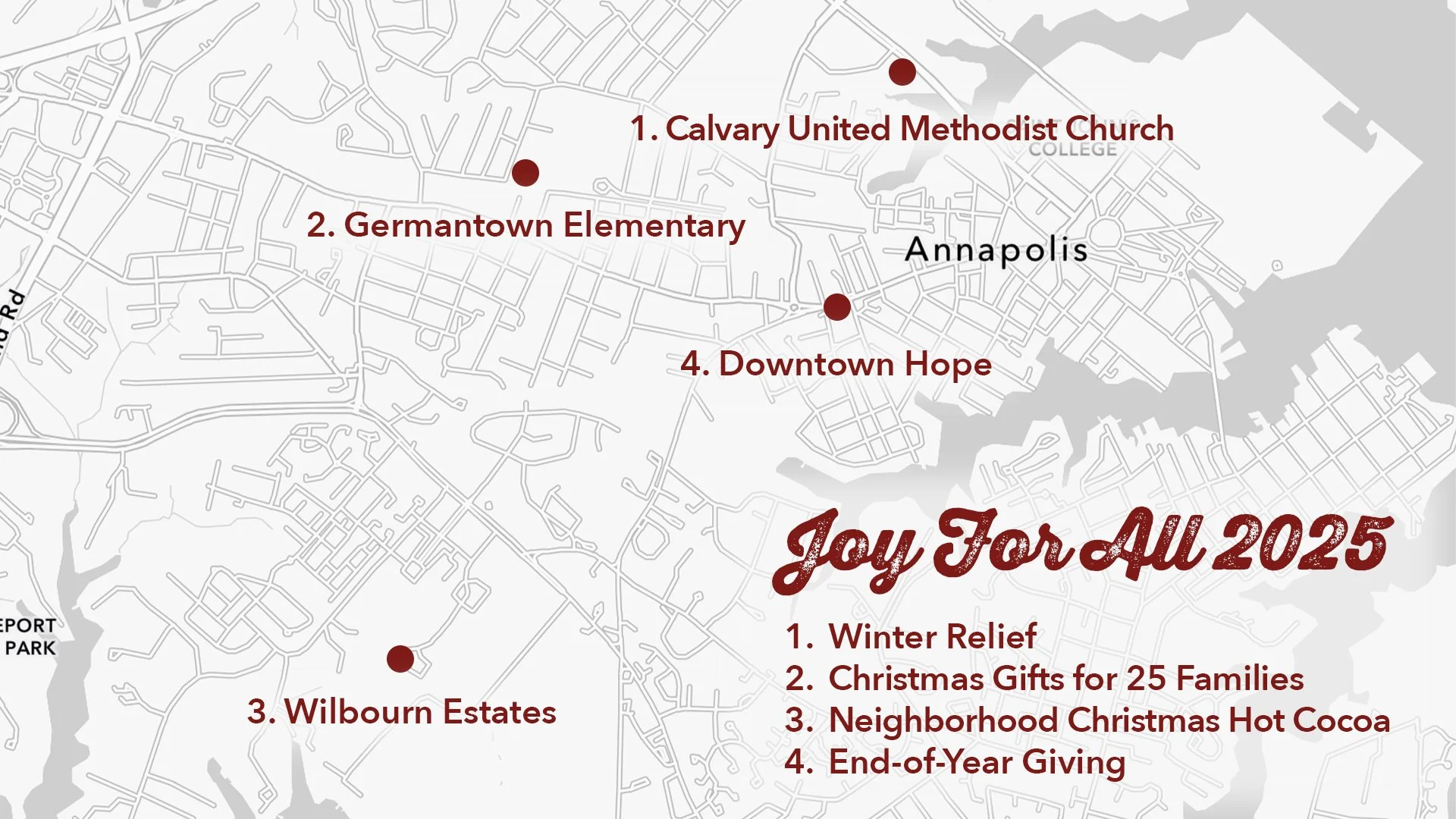 Winter Relief — In partnership with Calvary UMC, we provide warmth, shelter, and meals for our neighbors in need.